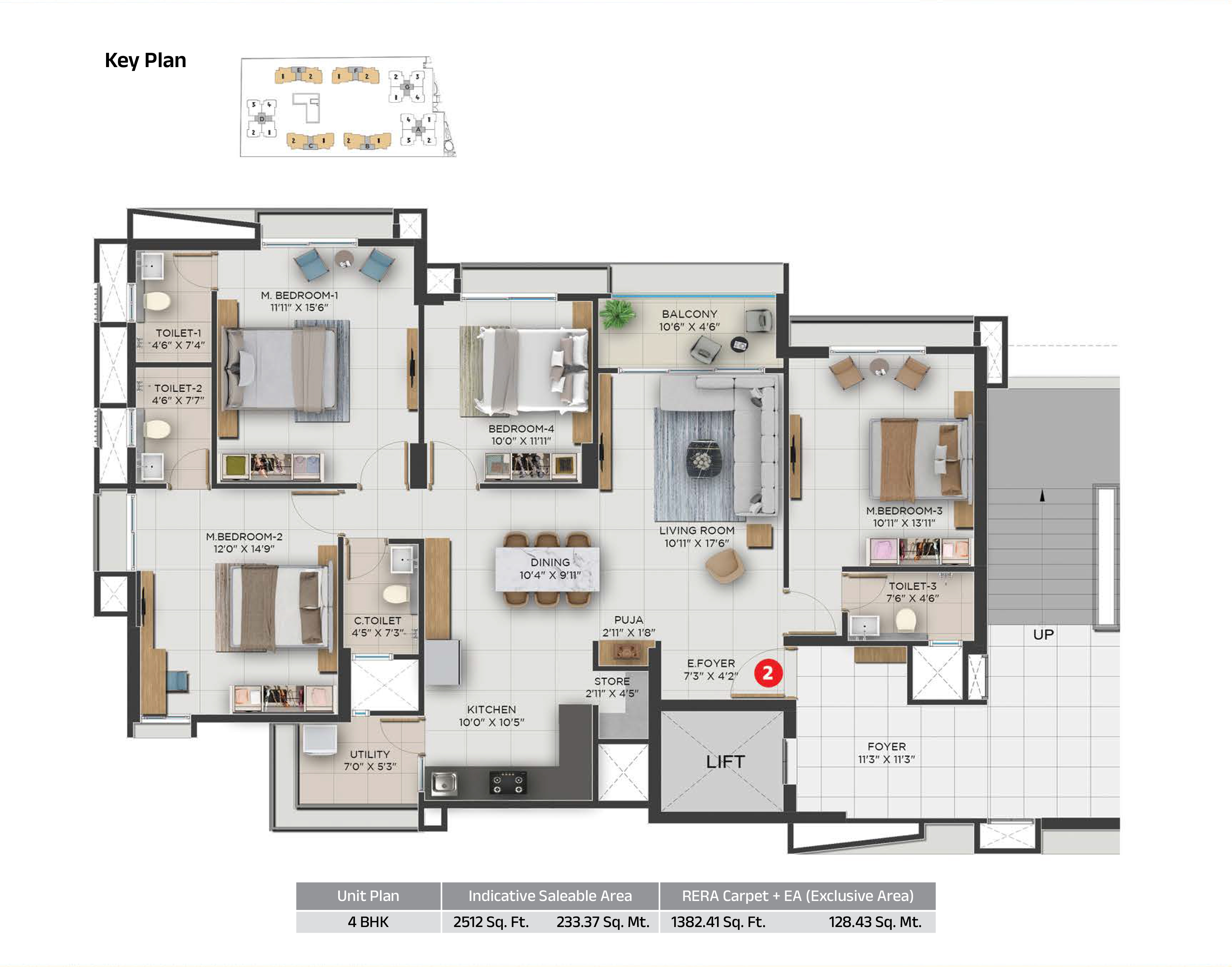 Only 2 homes per floor in 4 BHK towers for unmatched exclusivity